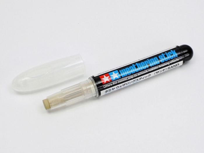立体的な汚れ表現が塗るだけで手軽に再現できるペンタイプのウェザリング材です。サンドはアフリカの砂をイメージした明るい黄色。スティックノリのようにペン先を回してカラーを出し、そのまま直接塗るだけ。水性タイプなので水を含ませた筆で塗り広げることもでき、乾かないうちに指で塗り広げることもできます。完成モデルにも気軽に使え、汚し表現が簡単に楽しめます。