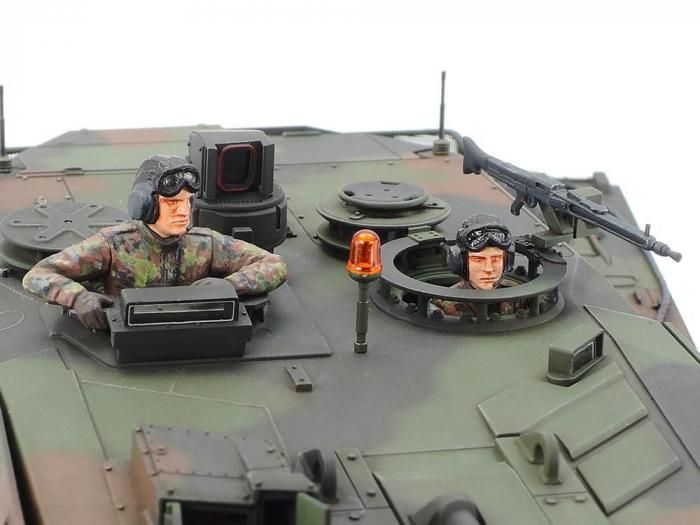 【 模型要目 】 ★レオパルト2 A6の1/35スケール、プラスチックモデル組立てキットです。★全長314mm、長砲身となった120mm滑腔砲など2A6 の力強いスタイルを忠実に再現。★特徴的な砲塔前面と側面の増加装甲もリアルな仕上がり。★ヘッドライトやテールランプは透明パーツ。★砲塔上の回転灯や道標などのアクセサリーをセット。★コマンダーとローダーの半身像、デカール4 種類付き。