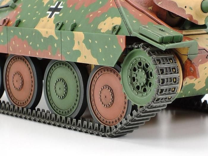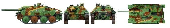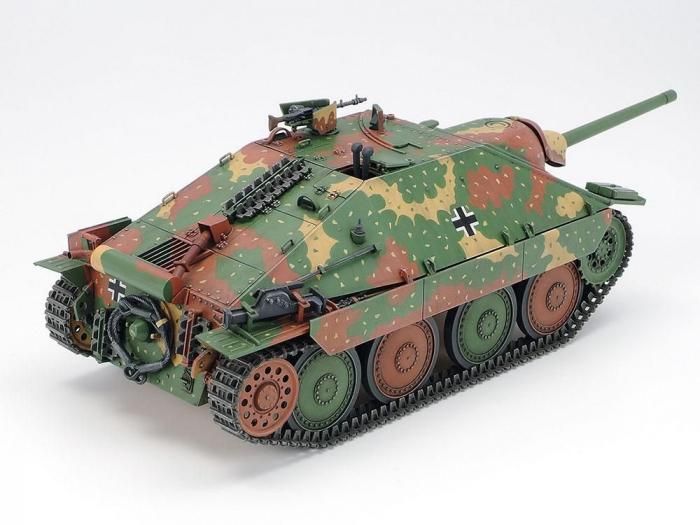 【 一歩踏み込んだ表現を存分に味わう 】 第二次大戦の中盤以降、連合軍戦車の火力と防御力が大幅に強化されるという厳しい戦況の下で、戦車の車体に大口径の主砲を固定式に搭載する自走砲はドイツ軍にとって重要な対戦車兵器となりました。中でもヘッツァーはチェコ製38(t)戦車の基本コンポーネントを受け継ぎ、前面装甲60mmの固定戦闘室に長砲身48口径7.5cm砲を搭載。1944年7月から部隊配備が開始され、低いシルエットを活かした待ち伏せ攻撃で威力を発揮、東西からドイツ本国に迫る連合軍にとって恐るべき強敵となったのです。ヘッツァーは各部に改良を加えながら約2,800輌という生産数を記録、戦後もチェコやスイス軍で使われました。