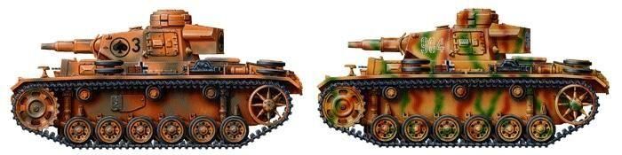 【 主力部隊を支える強火力 】 第二次大戦中盤、前線で問題となっていた火力支援車輌の不足に対処するため、III号戦車の主砲を高性能榴弾や成形炸薬弾も発射可能な短砲身7.5cm砲に換装したのが最終生産タイプのN型です。生産は既存のJ、L、M型を改修して行われ、1942年6月から43年8月までに663輌が完成、その後も1944年までに37輌が追加で改修されました。1942年夏から戦場に姿を現し、高性能榴弾による近接支援砲撃に威力を発揮。新編成された独立重戦車大隊にも配備され、重戦車タイガーIの定数不足を補いました。III号戦車N型は、運用しやすく信頼性に優れた支援戦車として大戦後半も幅広い戦線で奮闘したのです。