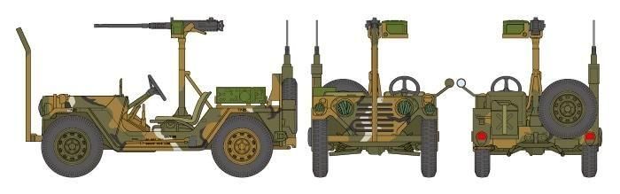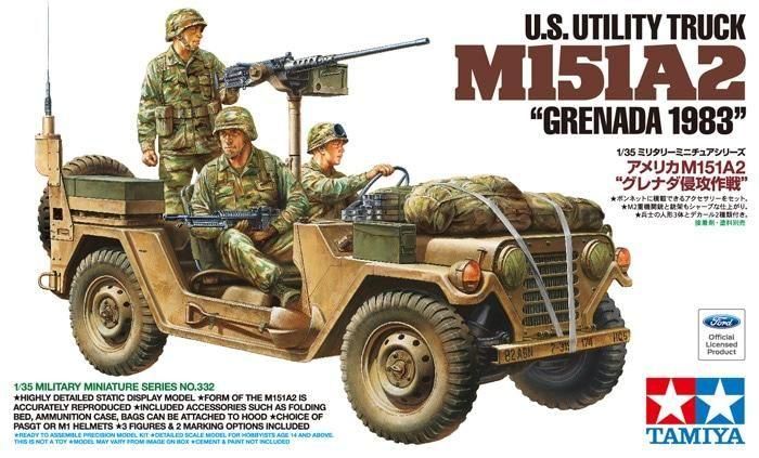 【 グレナダ侵攻作戦に出撃したM151A2 】 第二次大戦後、ジープの後継車輌として登場したのがアメリカ軍のM151シリーズです。コイルスプリングを使用した4輪独立サスペンションと頑丈で軽量なセミモノコックボディが特長でした。M151A2はベトナムなどで使われたM151A1の改良型として1970年に制式化され、1983年のグレナダ侵攻作戦でも多数が使用されました。グレナダではフロントウインドウを取り外し、ボンネットに荷物を満載した姿が多く見られ、搭載武装をM60機関銃からM2重機関銃に強化した車輌もありました。