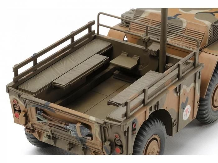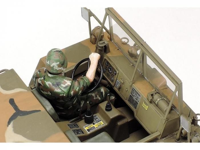 【 ユニークな6輪駆動の野戦救急車 】 1966年、アメリカ陸軍に制式採用された水陸両用の輸送車輌がM561ガマゴートです。4輪のトラクター部と2輪のトレーラー部を接続する関節式ジョイントや、6輪駆動の足まわりにより優れた悪路走破性を発揮。いくつかの派生型が開発されましたが、その中でも代表的なタイプであり、唯一独自の形式名称が与えられたのがM792野戦救急車です。トレーラー部のベンチシート内側に折りたたみ式のシートを増設し、展開して負傷兵用のベッドとして使用できました。またトレーラーには赤十字マークを描いた幌がかけられ、内部にはヒーターを装備。1983年のグレナダ侵攻作戦では、M561とともに派遣されて兵士の救護に使用されました。