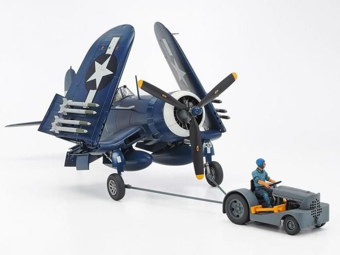 【 模型について】 ●アメリカ海軍の傑作戦闘機コルセア。その代表的なタイプF4U-1Dと艦載機の牽引に使用されたモトタグをセットしたプラスチックモデル組み立てキットです。 ●スケール1/48、F4U-1D コルセアの全長205mm、全幅236mm(主翼をひろげた状態)。モトタグの全長62mm、全幅29mm。 ●コルセア特有の精悍なスタイルはもちろん、位置を高めた操縦席や新型の太いプロペラなどF4U-1Dの特徴を確実に捉えてモデル化。 ●独特な逆ガル翼は折りたたんだ状態を再現。ひろげた状態での組み立ても可能です。 ●増槽2個に加え、ロケット弾8発もパーツ化。 ●モトタグは大径のダブルタイヤや大型バンパーなど立体感豊かに再現。牽引バーでコルセアと連結し、ディスプレイや情景を楽しめます。 ●牽引バーは機体の尾輪にかけるものと主車輪にかけるものの2種が付属。 ●パイロットとモトタグを運転中の作業員の人形、デカール3種類をセット。