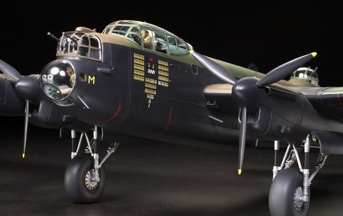 【 勝利をつかんだ傑作重爆撃機 】 第二次大戦中のイギリス軍を代表する重爆撃機がアブロ・ランカスターです。機体全長の半分近い長さ約10mの巨大な爆弾倉を持ち、頑丈な構造とあいまって最大で約10トンの爆弾を搭載できました。また英国製エンジンを搭載したMk.Iに加え、米国パッカード製のマーリンエンジンを搭載したMk.IIIも開発され、各型合わせて終戦までに7,000機以上を量産。大戦後半はドイツ本国に対する夜間爆撃の主力として飛び続け、延べ156,000回出撃して終戦までに合計60万トンもの爆弾を投下。ドイツの工業生産に大きな打撃を与えて連合軍の勝利に貢献し、スピットファイアやモスキートと共に大戦中にイギリスが生んだ傑作機の1つに数えられたのです。