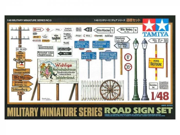【 道標について 】 道路標識は部隊や兵士に対して適切な指示を与えるという非常に重要な役目を果たしています。大戦中にドイツ軍で使われた標識は、目的地の地名や距離を表示する標識以外にも様々なものがありました。例えば地雷原など危険地帯に立てられて兵士の注意を促す標識、補給所や野戦病院などの所在地や方向を示す標識、そして部隊の移動や集結のための情報を提供する標識などです。これらの設置には電柱や建物などもよく利用され、1か所に大小様々な標識が密集して取り付けられる場合もありました。