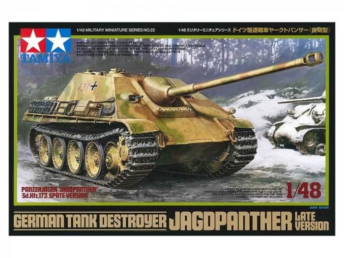 【 模型要目 】 第二次大戦で最優秀といわれた駆逐戦車ヤークトパンサーの1/48スケール、プラスチックモデル組み立てキットです。 ●全長203mm、傾斜装甲で構成された戦闘室と長大な8.8cm砲による均整のとれたスタイルを高い実感でモデル化。 ●装甲板の溶接跡や防盾まわりの鋳造肌など細部の表現が精密感を高めます。 ●マフラーは一般的な鋳造製の基部を持つタイプに加え、消炎装置と偏向ノズル付きのパーツもセット。 ●各乗員用ハッチは開閉選択式。 ●シャーシは重量感あふれるダイキャスト製。 ●キャタピラは直線部分を一体パーツとした連結組立式で立体感あふれる仕上がり。 ●大戦末期の3色迷彩が楽しめるマーキング3種類付き。