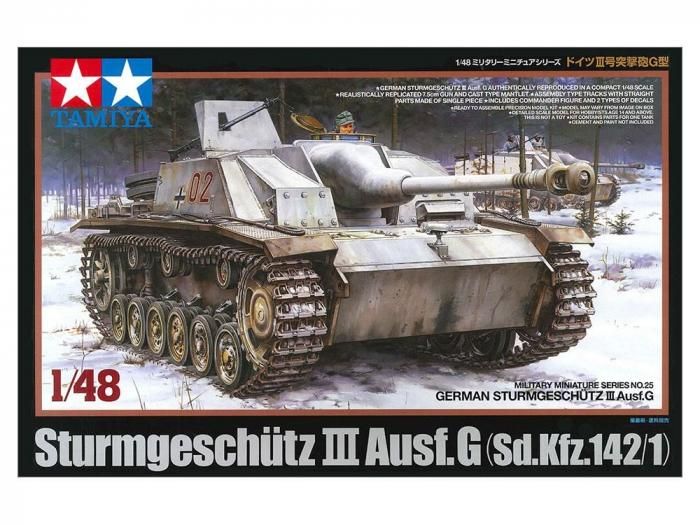 【 模型要目 】 強敵であるソ連戦車を撃破するため攻撃力を強化したIII号突撃砲G型の1/48スケール、プラスチックモデル組立てキットです。 ●全長140mm、長砲身7.5cm砲や鋳造防盾、キューポラ基部の跳弾板などを備えた精悍な姿を余すことなくモデル化。 ●工具類などの車外装備品は別パーツ。繊細な表情の砲隊鏡やMG34機関銃と共に細部を引き締めます。 ●シャーシは重量感あふれるダイキャスト製。 ●キャタピラは直線部分を一体パーツとした連結組立て式。上部の弛みも再現して足まわりも実感の高い仕上がり。 ●防寒服を着用した車長の半身像が臨場感を高めます。 ●デカール2種類付き。
