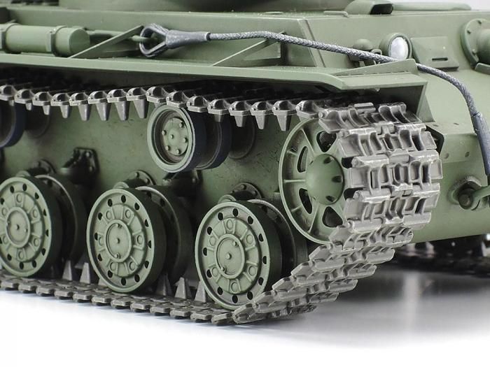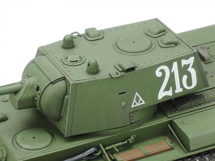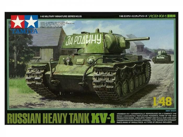 【 模型要目 】 ソビエトの傑作重戦車KV-1の1/48スケール、プラスチックモデル組立てキットです。 ●全長141mm、その後のソビエト戦車の基礎となった力強い姿をリアルに再現。 ●角張った溶接砲塔や39口径76.2mm砲など1940年型の特徴を確実に捉えてモデル化。 ●ダイキャストシャーシが重量感を演出。 ●キャタピラは組立てやすさに配慮して一体化を進めた連結組立て式。上部の弛みも表現して足まわりも実感の高い仕上がり。 ●砲塔側面のスローガンなどデカール3種類付き。