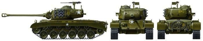 【 打倒タイガー!アメリカ戦車部隊の切り札 】 第二次大戦終盤、タイガーI など強力なドイツ軍戦車と堂々と対峙できる初のアメリカ軍戦車として登場したのがM26パーシングです。長砲身90mm砲と優れた機動力を備えるパーシングは1945年2月からヨーロッパ戦線に送られ、ドイツ本国への進攻作戦に出動。1945年5月のドイツ降伏までに約200輌が部隊配備され、タイガーIやIV号戦車、パンサーとも砲火を交えました。そして1950年6月に勃発した朝鮮戦争にも投入され、北朝鮮軍のT34/85戦車を圧倒する強さを見せたのです。