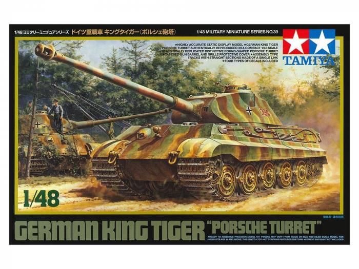 【 模型要目 】 ●ポルシェ砲塔を装備したドイツ重戦車キングタイガーの1/48スケール、プラスチックモデル組立てキットです。 ●全長213mm、曲線で包まれた独特な砲塔形状を高い実感でモデル化。 ●一体型の砲身や砲塔基部のターレットリングガード、エンジングリルの爆発物防止カバーなどヘンシェル砲塔タイプとの違いを忠実に再現。 ●ダイキャストシャーシが戦車の重量感を演出。 ●キャタピラは直線部分を一体パーツとして組立てやすさにも配慮した連結式。 ●デカールはノルマンディーで戦った第503重戦車大隊の所属車輌を4種類セット。