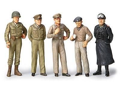 【 情景製作の幅を広げる5人の名将 】 第二次大戦で名をはせた指揮官5人を1/48スケールで再現したプラスチックモデル組み立てキットです。アメリカの名将として堂々としたポーズのパットン将軍、アイクジャケットと呼ばれるジャケット姿のアイゼンハワー元帥、コーンパイプを持ったマッカーサー元帥。ベレー帽にセーター姿のイギリスのモントゴメリー元帥。ドイツのロンメル元帥は双眼鏡を首から下げたコート姿。それぞれ特徴的なスタイルとポーズで立体化しました。人形各2体入り。