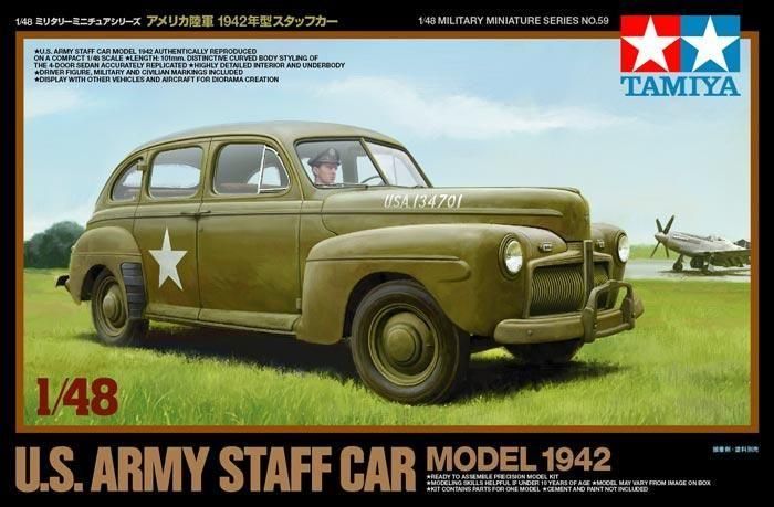【 模型要目 】 アメリカ陸軍1942年型スタッフカーの1/48スケール、プラスチックモデル組み立てキットです。★全長101mm、大柄で迫力あるボディフォルムを合理的なパーツ構成で実感豊かにモデル化。★室内や車体下面も少ないパーツ点数で立体感あふれる仕上がり。★マーキングはアメリカ陸軍に加え民間車もセットしました。★コレクションはもちろん、別売の米軍車輌や航空機と組み合わせ、展示や情景作りが楽しみです。★ドライバーの人形付き。
