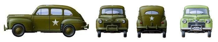 【 アメリカ車ならではのボリュームあふれるフォルムが魅力 】 第二次大戦中、アメリカ陸軍は様々な民間乗用車を調達し、スタッフカーとして使用しました。中でも最も多く採用されたのが1942年型と呼ばれる4ドアセダンです。全長4.9mの大型ボディに90馬力6気筒3700ccエンジンを搭載。1942年2月には生産がすべて軍用へと移行されました。1942年型スタッフカーは連絡や高級将校の移動に幅広く使われ、陸軍航空隊でも搭乗員達に親しまれました。