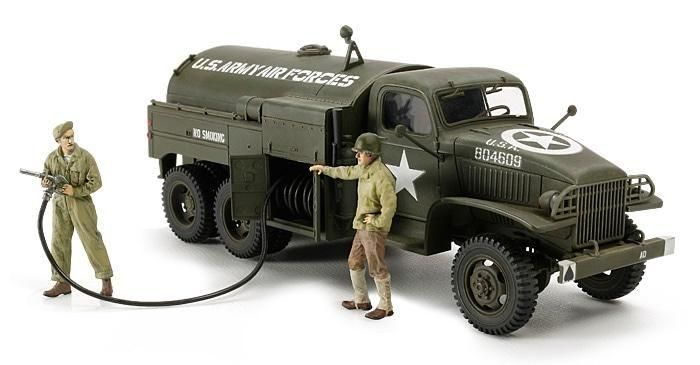 【 航空機への燃料給油は、任せろ! 】 制空権の確保が最重要となった第二次大戦で、航空機などへの燃料・潤滑油の補給に活躍したのがアメリカ軍の2 1/2トン フューエルトラックです。幅広く使われた2 1/2トン トラックの派生型として登場し、荷台部分に大型の燃料タンクとエンジン駆動の給油ポンプを装備。タンクサイドの扉を開いて給油ポンプを操作します。乗員は2名、悪路走破性の高い6輪駆動を採用し、6気筒4サイクルエンジンを搭載していました。大戦後半、連合軍の反攻作戦により前線近くに飛行場が確保されると、フューエルトラックを使用した効率の良い給油作業が行われました。