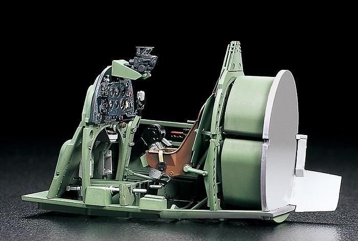 【 水滴形キャノピーが全周視界を確保 】 第二次大戦でイギリスを救った傑作機スピットファイア。中でも大戦後半にイギリス空軍の主力戦闘機となったMk.IXのエンジンをアメリカ製のパッカード・マーリン266に換装したのがMk.XVI(16)です。その多くは20mm機関砲2門と12.7mm機銃2挺を搭載したEウイングと面積が拡大されたラダーを備えていました。生産途中から後方視界を改善した水滴形キャノピーが採用され、それに合わせて胴体後部の形状を変更。また多くの機体がコクピット前方の主燃料タンクに加え、後方にもタンクを増設していました。1944年9月から1945年7月頃までに1,054機が量産され、大戦中はヨーロッパ戦線に配備されてMk.IXとともに戦闘爆撃機として奮戦。戦後も本国のイギリス空軍では1950年代初めまで飛び続け、ベルギーやギリシャ空軍などでも使われました。