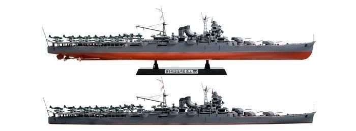 【 模型要目 】 日本航空巡洋艦 最上のプラスチックモデル組立てキットです。 ●1/350スケール、全長573mm、全幅76mm。船体後部に航空甲板を備えた独特なスタイルを、昭和18年の改装完了時の姿で余すことなくモデル化。 ●船体は上部を左右分割式、下部を一体パーツとして、美しい艦首をはじめとする船体フォルムを実感豊かに再現。 ●船体や航空甲板など大きな部品にはビス止めを使用し、確実に組立てられます。 ●コンパクトな艦橋構造物や誘導煙突など最上型の特徴をとらえて再現。 ●艦橋窓と探照燈のレンズ部分は透明パーツでリアルなアクセントを加えます。 ●主砲塔や魚雷発射管、高角砲やカタパルトなどは完成後も旋回可能。 ●主砲砲身は通常時と対空戦闘時のパーツを用意。ポリキャップにより完成後も差し換えられます。 ●前後マストや旗竿などは折れにくいABS樹脂を採用。 ●各部の対空機銃は消炎器や放熱板まで細密な仕上がり。 ●クレーンやカタパルト、艦載機のプロペラ、運搬車、滑走車などは繊細なエッチングパーツを用意。 ●アンカーチェーンとプロペラシャフトは金属製。 ●艦載機として零式水上観測機3機と零式水上偵察機8機をセット。繊細なモールドで存在感も十分。艦載機を飛行状態で展示できるスタンドも用意。 ●展示用の台座付き。