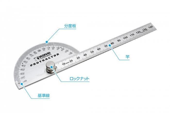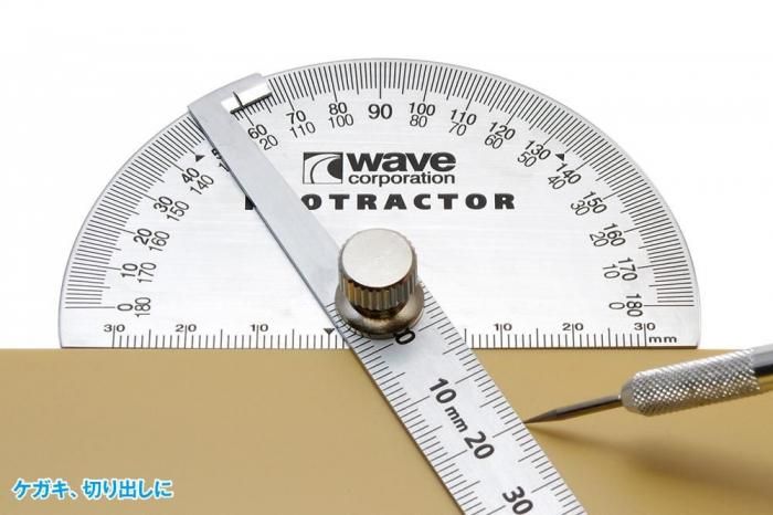 プラスチックやレジンパーツ等の角度測定や任意の角度のケガキ、切り出し作業の補助に役立つ測定工具です。