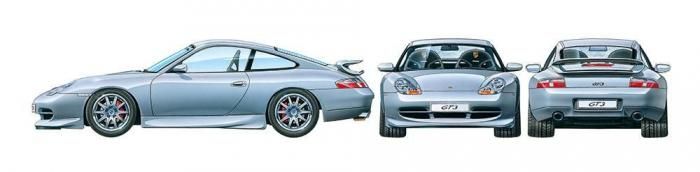 【 ポルシェ 911 GT3 について 】 1997年に初めてフルモデルチェンジを受けて、コードネーム996で呼ばれている現在のポルシェ911。その高性能バージョンとして1999年に加わったのがGT3です。30mm低くされた車高やブーメラン型リヤウイングの装備などにより、いっそう精悍なフォルムに仕上げられ、360馬力を発揮する3.6リッターの水平対向6気筒エンジンには、レーシングテクノロジーが惜しみなく注がれています。