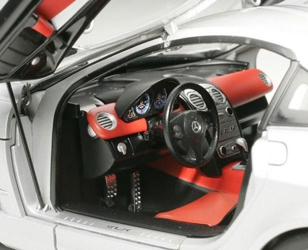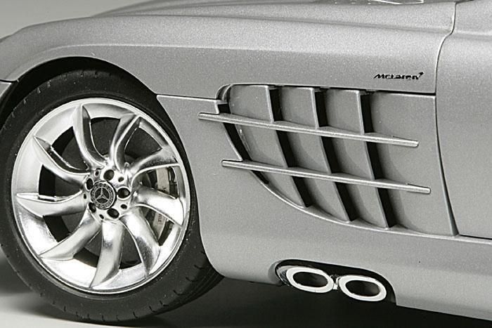 【 模型要目 】 ●メルセデス・ベンツのプレミアムスポーツカー、SLR マクラーレンのプラスチックモデル組み立てキットです。 ●スケール1/24、全長195mm、全幅81mm。 ●ロングノーズ・ショートデッキの個性的なフォルムをリアルに再現。 ●スイングウイングドアと呼ばれる左右ドアは金属製クランクシャフトを使用して実車同様に開閉可能。 ●ボンネットも開閉でき、完成後もV8エンジンを観察できます。 ●フェンダーやトランク、サイドシルのエンブレムやロゴにインレットマークを使用。 ●つやあり、つや消しメッキパーツで質感を演出。 ●テールレンズはクリヤーレッド部品。 ●アンダーパネルはダイキャスト製。