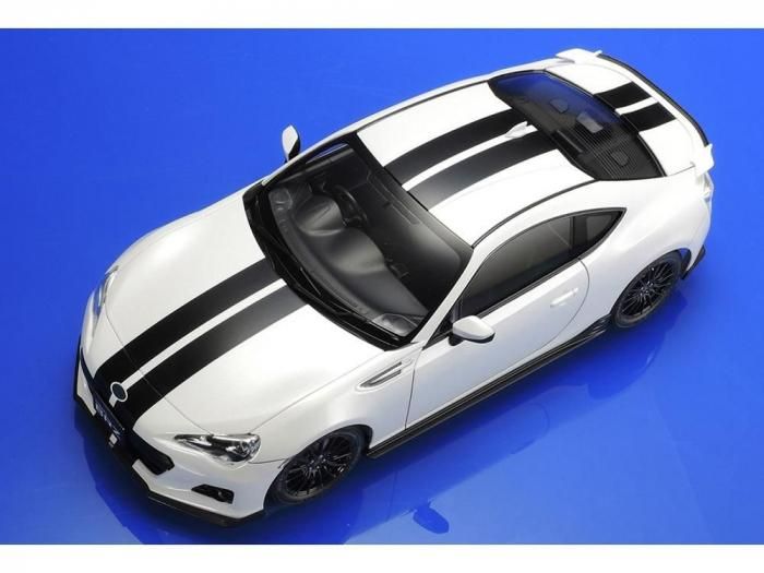 【 高機能パーツで走りのイメージもいっそう 】 「SUBARU BOXER」と呼ばれる水平対向4気筒2.0リッターエンジンを搭載した新時代のFRスポーツカーとして2012年3月に発売されたSUBARU BRZ。街でもオーナーの好みで思い思いのパーツを取り付けた姿を見かけるようになりました。そんなカスタム仕様をイメージしたモデルです。SUBARUのモータースポーツを統括するSTI(SUBARU TECNICA INTERNATIONAL)からリリースされている高機能パーツを装備。さらに、ボディセンターに貼ってフォルムを引き締めるホワイトとブラックの2色のストライプをスライドマークで用意。いっそう精悍で走りのイメージにあふれた仕上がりが楽しめます。