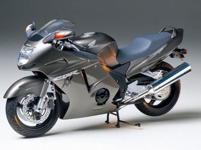 300km/hオーバーのトップスピードを可能にしたスーパースポーツバイクとして1996年に発表され、センセーションを巻き起こしたHonda CBR1100XXのプラスチックモデル組み立てキットです。エアロダイナミクスの追求から生まれた個性的なカウリングをスライド金型により実車そのままにモデル化。フレームやサスペンション、高性能な水冷並列4気筒エンジンも細かな彫刻表現により高密度再現。エンジンやカウリングは極小ビスでフレームに取り付け、メカニック気分も味わえます。また特徴的な表情を作り出す上下配置の2灯ヘッドライトのケースをはじめ、サイレンサーやフロントフォークはメッキパーツを使用。モデルの仕上がりを高めます。