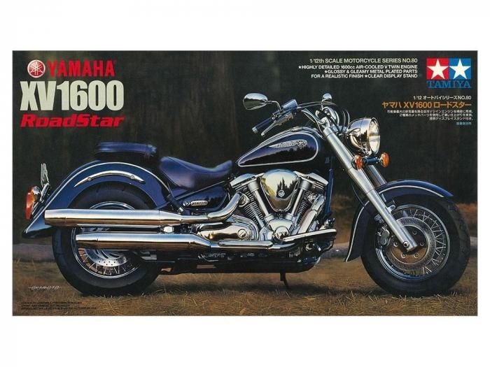 【 模型について 】 ●ヤマハの最上級アメリカンモデル XV1600 ロードスターを1/12スケールで再現した組み立てモデルです。 ●全長208mm、全幅89mm、全高100mm。 ●ボリューム感あふれるロー&ロングフォルムを実感たっぷりにモデル化。 ●注目の空冷Vツインエンジンは冷却フィンの1枚1枚から各気筒2本の点火プラグ、キャブレターまで精密に再現。 ●つやあり、つや消しの2種類のメッキパーツで仕上がりの質感を高めます。 ●ブレーキライン、クラッチワイヤーなどはビニールパイプで表現。 ●タンクサイドのエンブレムはメッキパーツ製で、日本・アメリカ仕様の「RoadStar」とヨーロッパ仕様の「WildStar」の2種類を選べます。 ●車体のストライプやメーターはデカールで再現。 ●透明ディスプレイスタンド付き。