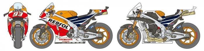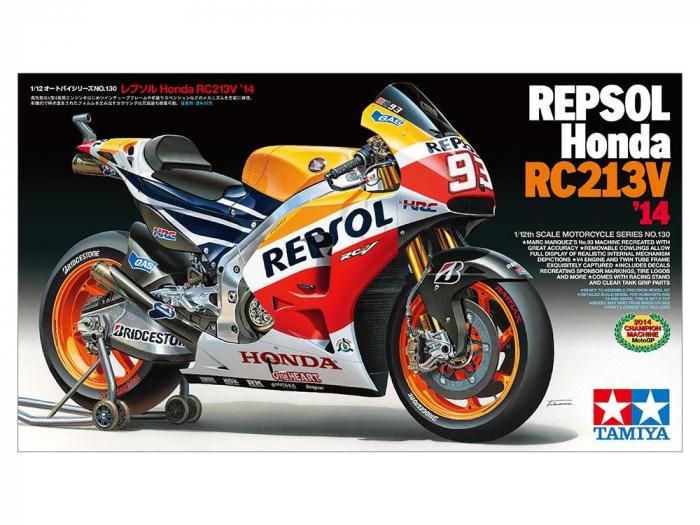 【 模型要目 】 ●1/12スケールのプラスチックモデル組み立てキットです。 ●全長173mm、全幅58mm。 ●ゼッケン93番のM.マルケス車を再現。 ●カウリングは完成後も脱着可能。内部メカが観察できます。 ●透明パーツのスクリーンは接着せずに取り付けOK。 ●タンクカバーのニーグリップ用パッドはクリヤーの別部品。 ●230馬力以上を発揮する水冷V型4気筒エンジン、剛性の高さを感じさせるスイングアーム、繊細な構成のフロントフォークはビスを使用してフレームに固定、確実な組み上がりを約束します。 ●V型4気筒エンジンは各部の補機類まで精密にモデル化。 ●テールカウルに装着される車載カメラもパーツ化。 ●前後のレーシングスリックタイヤは質感あるソリッドゴム製。サイドウォールのロゴはマークで表現。 ●スポンサーロゴやメーターパネル用のスライドマークは発色に優れたシルクスクリーン印刷。塗り分け用マスクシール付き。 ●レーシングスタンドもセット。