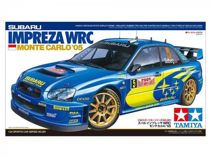 【 模型要目 】 ●2005年の世界ラリー選手権モンテカルロラリーを戦ったスバル インプレッサ WRC のプラスチックモデル組立てキットです。 ●スケール1/24、全長183mm、全幅75mm、全高57mm。 ●迫力のフォルムをリアルにモデル化。スプリッターを装備した大型リヤウイングは一体パーツ。また、ルーフ後端に立てられた短いアンテナも再現。 ●BBS製4穴ホイールはゴールド塗装済み。 ●タイヤはリアルなソリッドゴム製。サイドウォールのロゴはタイヤマークでセット。 ●ラリー装備満載の室内も立体感十分な仕上がり。コドライバー用のヘッドレストを別パーツ化。 ●スライドマークはP.ソルベルグ選手のNo.5、S.サラザン選手のNo.6の2種類を用意。