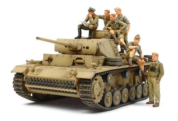 【 ロンメル将軍の有名な写真を再現 】 ドイツ・アフリカ軍団を率いた名将ロンメル将軍がIII号戦車の砲塔に腰を降ろして作戦を練っている有名な写真のシーンを再現できる、1/35スケールのプラスチックモデル組み立てキットです。 ●III号戦車の砲塔に座るロンメル将軍と戦車搭乗員の合計6体を自然なポーズでモデル化しIII号戦車L型にセット。 ●アフリカ軍団らしいバラエティー豊かな服装を再現し、さまざまな場面で活用できる汎用性の高いフィギュアです。 ●III号戦車L型の全長176mm、全幅85mm。 ●L型の特徴ともいえる操縦手席前面や主砲防盾部の増加装甲板をはじめ、たくましさを加えた姿を高い実感で再現。 ●このキットだけで車輌とフィギュアを組み合わせた情景シーンが楽しめます。 ●第10戦車師団所属車のデカール付き。※人形パーツはマスターボックス社製。