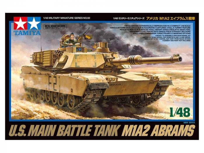 M1A2 エイブラムスの1/48スケール、プラスチックモデル組み立てキットです。★全長205mm、全幅77mm。★平面で構成された砲塔に44口径120mm滑腔砲を搭載した精悍な姿を、組み立てやすいパーツ構成でリアルに再現。★砲塔や車体上面の滑り止めパターンも繊細な仕上がり。★履帯は直線部分を一体パーツとした部分連結式。★コマンダーの半身像、「イラクの自由作戦」時のデカール2種類付き。★車体内部のウェイトが重量感を演出します。