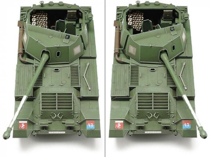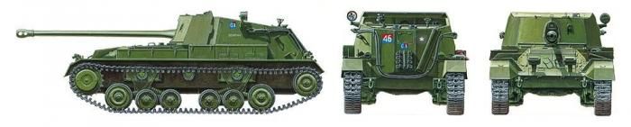 【逆転発想のタンクキラー】 1942年、イギリス軍はドイツ軍の8.8cm砲に匹敵する性能を持つ、17ポンド砲を搭載する自走砲アーチャーの開発に着手しました。本格的な対戦車車輌が配備されるまでのつなぎ役として、既存の車輌を改造することとされ、最終的にバレンタイン歩兵戦車が選ばれました。小型の車体に長大な主砲を搭載するため、バレンタインの車体を延長し前後逆にして使用。車体前半部分を戦闘室として砲を後ろ向きに搭載しました。高速徹甲弾を使用すれば距離約900mで厚さ192mmの装甲板を貫徹でき、ドイツ軍のあらゆる戦車を遠距離から撃破可能。1944年4月に生産が開始され、機甲師団や歩兵師団の対戦車大隊に配備。同年10月に初めて実戦投入され、ドイツ戦車に対する切り札として大きな働きを見せました。