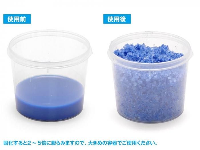 水性・油性塗料、エナメル塗料、レジンキャスト、離型剤落とし液、うすめ液などの廃棄用固化剤です。