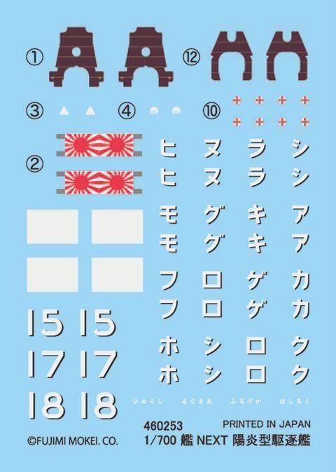 □さらにデカールには舷外電路を削り開戦前の姿を目指すハイエンドユーザー向けにサービス収録で、煙突識別白線や艦名表示や駆逐隊番号を。