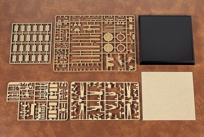 【 模型要目 】 北アフリカ戦線で活躍したPak36(r)対戦車砲陣地の情景に手軽に取り組めるセットです。 ●対戦車砲本体と砲兵の人形8体に加え、土のうと砂漠の情景シート、情景ベースなど情景製作に必要な基本アイテムが揃っています。 ●対戦車砲は繊細なパーツ構成で精密感あふれる仕上がり。 ●徹甲弾や榴弾、砲弾ケース、レンジファインダー、砲隊鏡などのアクセサリーを豊富に用意。 ●兵士は半ズボンやバギーパンツ、ヘルメットやサイドキャップなど様々な服装で再現しました。 ●別売の情景テクスチャーペイントも便利に使っていただけます。※Pak36(r)パーツはICM社製。