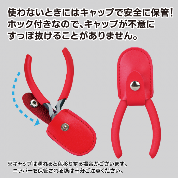 使わないときに安全に収納可能なホック付きニッパーキャップを採用