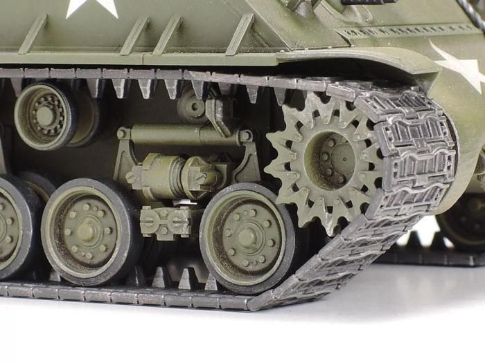 【 傑作戦車の集大成をコンパクトサイズで 】第二次大戦中に5万輌近くが生産され、連合軍の主力戦車となったM4シャーマン。その数多いバリエーションの中でも、大戦中の最終型となったのがM4A3E8です。防御力を向上させた後期型の溶接車体にフォード製V型8気筒ガソリンエンジンを搭載。新型の水平懸架式サスペンション(HVSS)と幅の広い履帯による優れた走破性能、長砲身76mm砲の高い攻撃力が特徴でした。形式名称であるE8にちなんでイージーエイトとも呼ばれるM4A3E8は、1944年8月から1945年4月までに約2,600輌を生産。1944年12月のバルジの戦いで初陣を飾り、大戦末期のヨーロッパ戦線で連合軍の勝利に貢献。戦後は朝鮮戦争に投入され、創成期の陸上自衛隊にも供与されました。