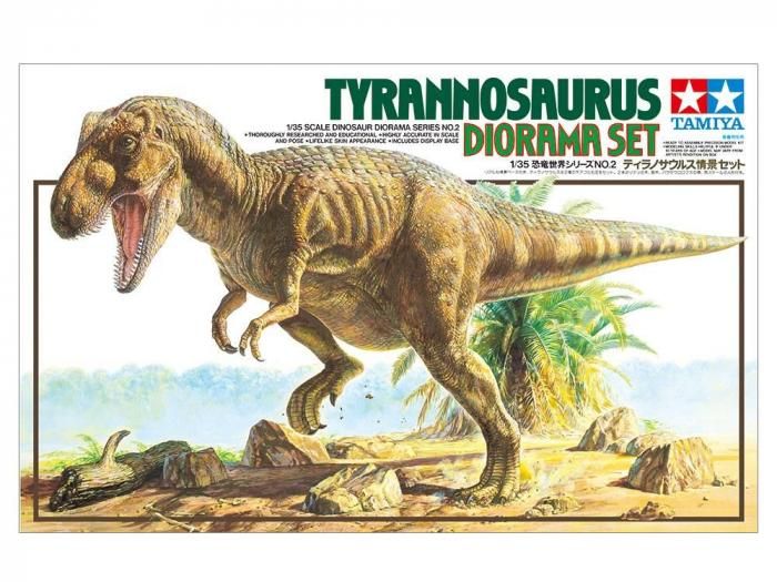 【 模型要目 】 最大最強の肉食恐竜、ティラノサウルスを再現した1/35スケールのプラスチックモデル組み立てキットです。★完成時の体長375mm。★太い尾をピンと伸ばしてバランスを取りながら、がっしりとした2本の後足で歩く躍動感ある姿を生き生きと表現。★足は2種類をセットして、歩く姿と走る姿を選んで組み立てられます。★鋭い歯をリアルに再現した口も、開いた状態と閉じた状態を選択可能。★ソテツの木2本や、草食恐竜パラサウロロフスの骨、大きさの比較にぴったりな人形もアクセサリーとしてセットしました。