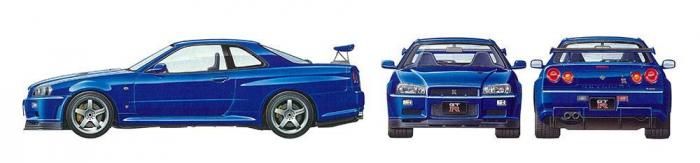 【 スカイラインGT-R(R34)の最終型を模型で残してください 】 国産最強の走行性能を誇るニッサン・スカイラインGT-R はレースで得たノウハウを次々に投入して熟成を重ねてきました。1999年1月にフルモデルチェンジを受けR34型となり、2000年10月にはリヤ・ブレーキディスクの大径化などのマイナーチェンジを実施。中でもVスペックIIは冷却ダクト付きのカーボン製エンジンフードを新たに採用した走りのトップグレードです。