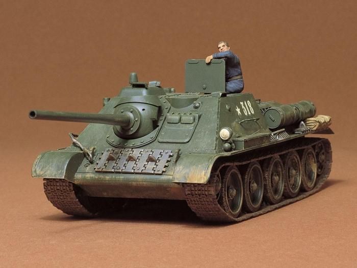 【 模型要目 】 1/35スケール、全長235mm。第二次世界大戦でソビエト軍が作り出した傑作襲撃砲戦車を再現したプラスチックモデル組立キットです。 ●大径のロードホイールや独特なパターンもリアルに再現したキャタピラなど、T34戦車と共通の車体下部も実感ある仕上がりです。 ●キャタピラはベルトタイプで組み立ても手軽です。 ●主砲は完成後も上下左右に可動。情景製作でも表情の変化が楽しめます。 ●ドライバーズハッチや戦闘室上部ハッチは開閉選択式。 ●ハッチを開けて腰掛けるリラックスしたポーズの戦車兵の人形もセット。 ●車体に取り付けられる燃料タンクや補助キャタピラ、スコップや毛布など、アクセサリーパーツも豊富。 ●88mm砲を搭載するドイツの駆逐戦車ヤークトパンサー(ITEM 35203)との作り較べも楽しみです。