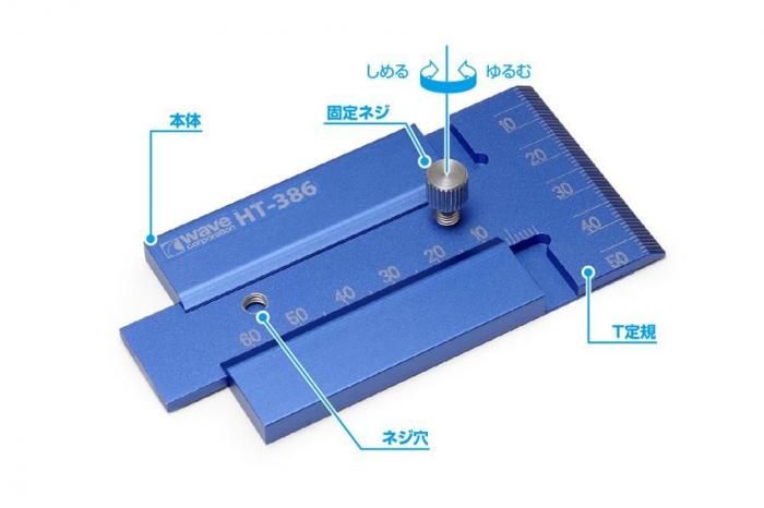固定ネジをしめるネジ穴の位置でT定規がスライドする範囲を調節可能。
