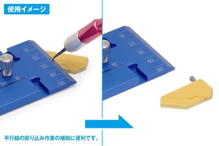 プラスチック板の平行切り出しや模型部品への平行線の彫り込み作業などの補助に便利!