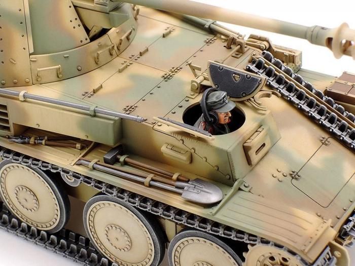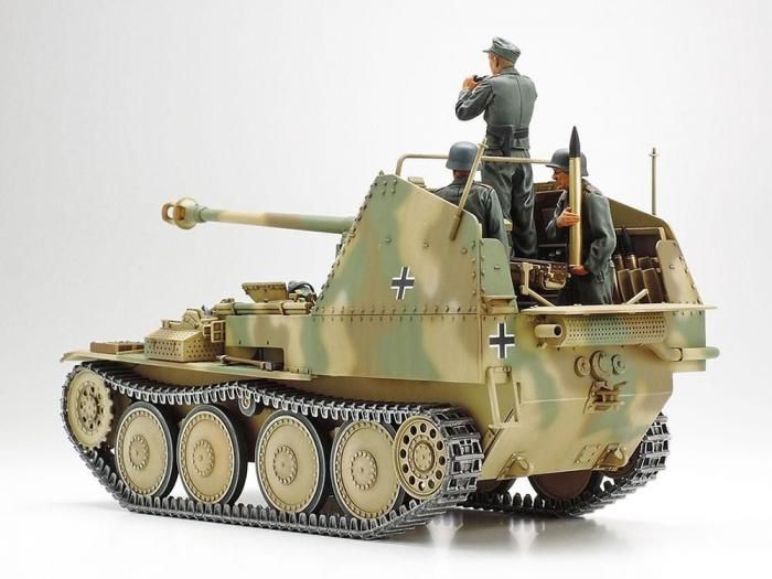 【 模型要目 】 ドイツ軍の対戦車自走砲、マーダーIIIMのプラスチックモデル組み立てキットです。●1/35スケール。全長149.5mm、全幅61mm。●低く構えた精悍な姿を実感豊かにモデル化。●戦闘室内部も立体感あふれる仕上がり。●履帯は直線部分を一体とした部分連結式。●ラックに収納できる砲弾12本を用意。●マフラーの放熱カバーはエッチングパーツで表現。●射撃準備中の乗員など全身像4体と半身像1体、デカール2種類付き。