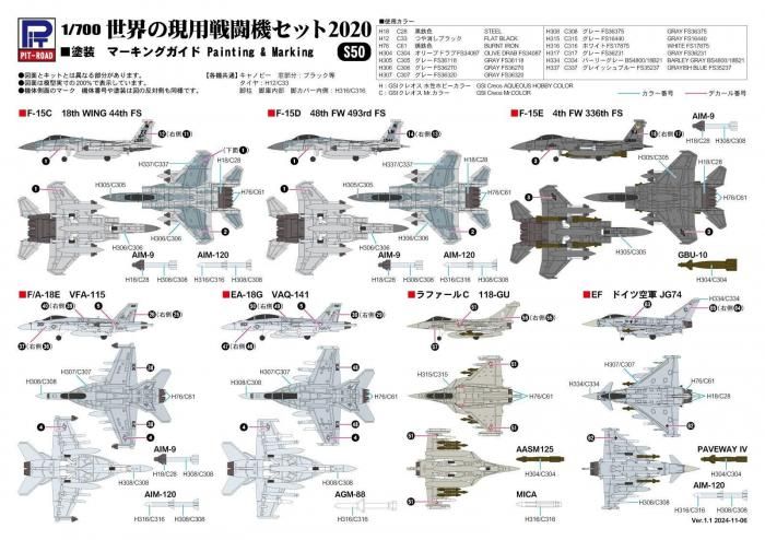 【ピットロード】S50)1/700 世界の現用戦闘機セット2020