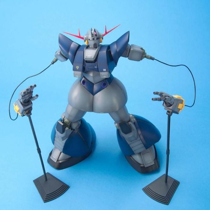 「機動戦士ガンダムMSV」、「プラモ狂四郎」に登場する「パーフェクトジオング」のMG仕様のプラモデル。脚部、上腕外装を追加装備し、ジオングの完全形態をリアルに再現しています。脚部を付けた状態でもサイコミュ誘導アームを展示できるベースを同梱。マンガ「プラモ狂四郎」に登場したサーベルが付属し、サーベルにはメッキパーツを採用しています。MG最高のボリューム内容で、箱には持ち運びに便利な取ってが付いています。