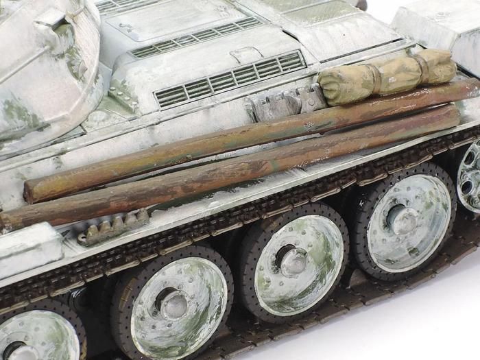 【 模型要目 】 ●ソビエトの傑作戦車T34/76を1/35でモデル化したプラスチックモデル組み立てキットです。 ●傾斜面を組み合わせた車体形状や小型で低い砲塔など、T34/76のスマートな姿を実車そのままに再現。ラフな装甲板の表面や溶接跡など、リアルな彫刻で実感あふれる仕上がりが楽しめます。 ●開閉選択式のドライバーズハッチは裏側も再現。 ●砲身、砲塔は可動。 ●スペアホイール、丸太、毛布、補助燃料タンクなど多数のアクセサリー部品つき。 ●ロシア戦車兵の半身像2体付き。