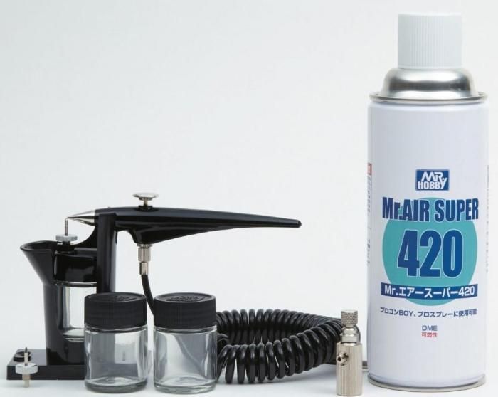 入門用プロスプレーベーシックに、塗装作業の効率性を高めるプロスプレー用スタンド、スパイラルホースをセットしたプロスプレーシリーズのデラックス版です。