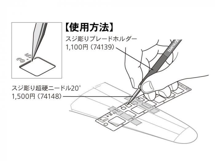 【 シャープな正方形スジ彫り作業をサポート 】 別売のスジ彫り超硬ニードル(ITEM 74148)でスジ彫り加工をする時に便利な金属製テンプレートです。飛行機モデルの点検パネルなどに見られる、正方形のパネルラインのスジ彫りに活躍。幅1mm〜10mmの正方形を0.5mm刻みで計19個配置。角のR(半径)が異なる4種類のプレートで構成しました。緩やかな曲面にもなじむ作業性の高い厚さ0.1mmのステンレス製。