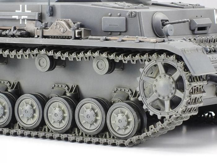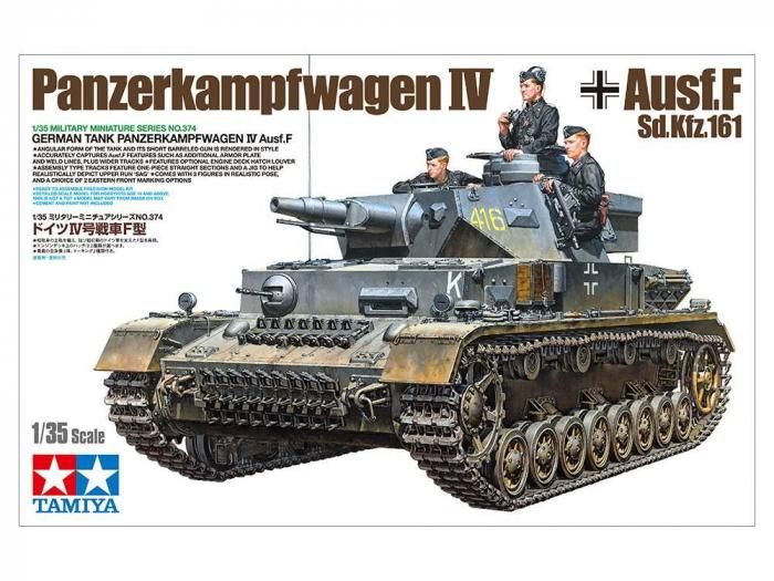 【 模型要目 】 IV号戦車F型の1/35スケール、プラスチックモデル組み立てキットです。★全長168mm、全幅82mm。★平面構成の車体に短砲身の主砲を備えた精悍な姿を実感豊かに再現。★防御力を高めた装甲の接合部に施された溶接模様や幅広の履帯など、F型の特徴をとらえてモデル化しました。★エンジンデッキ上のハッチは熱帯地用ルーバーの有無が選択可能。★センターガイドの肉抜き穴を再現した履帯は、パーツの一体化を進めた連結組み立て式。上部のたるみを表現するための治具も用意しました。★キューポラハッチから前方を見据える車長と、側面ハッチから身を乗り出す砲手・装填手の全身像が臨場感を演出。★デカールは東部戦線に投入された車輌2種類をセット。