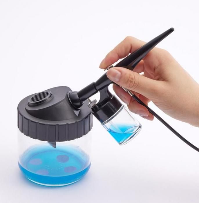 ●エアブラシ/プロスプレー用ノズル受けを使用することで、洗浄吹きの際にエアブラシのカップに残ったカラーの飛散を軽減させます。