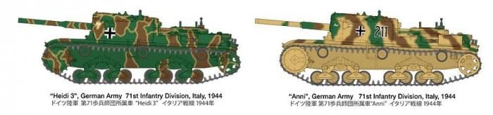 【 凄みを増したイタリア生まれの傑作自走砲 】 第二次大戦中にイタリア軍が運用した兵器の中でも、M13/40中戦車をベースに作られた自走砲、セモベンテM40 da75/18は、最も成功した車輌として信頼を集めました。この自走砲をさらに改良・発展させたのがM42 da75/34です。車体のベースにはエンジン出力を向上したM15/42中戦車が新たに選ばれ、貫徹力に優れる長砲身の34口径75mm砲を搭載。1943年春に量産が始まりましたが、同年9月のイタリア降伏により、多くはドイツ軍の装備として運用されることになりました。主に歩兵師団の対戦車部隊に配備されたM42 da75/34は、低い車体と長砲身75mm砲の威力を活かし、待ち伏せ攻撃に力を発揮。イタリア戦線のドイツ軍が降伏する1945年5月まで奮戦を続けたのです。